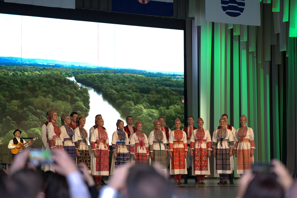 The Croatian Folk Dance and Song Ensemble LADO also performed at the Official Ceremony. LADO is a professional folklore ensemble founded 76 years ago with the task and goal of researching, collecting, artistically processing and staging the most beautiful examples of the rich Croatian musical and dance tradition. With its performance, LADO presented the richness and diversity of folklore expression and folk costumes of the Republic of Croatia, and with its song and dance, it presented a kind of revue of authentic Croatian traditional clothing.