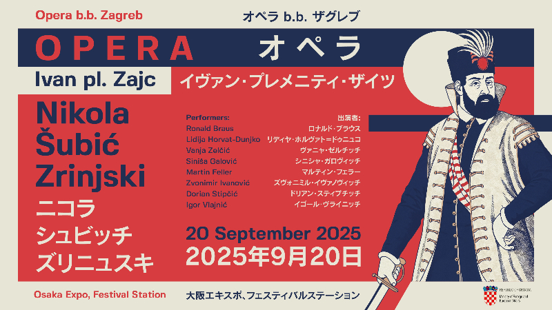 Povodom obilježavanja Nacionalnog dana Republike Hrvatske na EXPO 2025 Osaka u subotu, 20. rujna 2025. godine od 19 do 20 sati nastupiti će Opera b.b. Zagreb na pozornici Festial Station-a uz slobodan ulaz za sve posjetitelje.